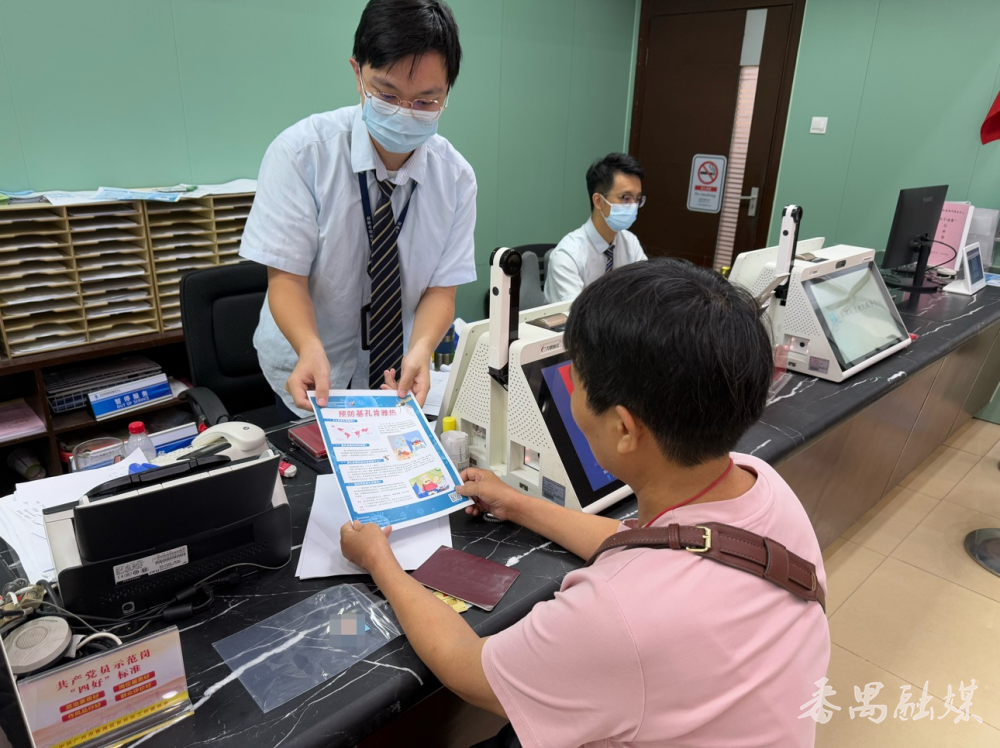 中心将防控措施嵌入服务全流程,办事群众从进门测温开始,到业务受理环节,窗口工作人员主动提醒办事群众“居家清积水、外出防叮咬”等健康防护要点,让相关知识随服务传递至每一位群众。