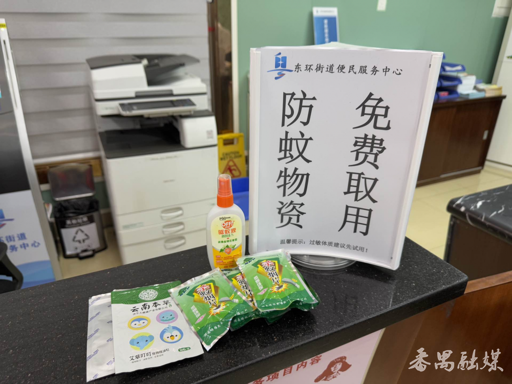 中心还在显眼位置张贴防控海报,利用电子屏播放科普短视频,详细介绍“两热”(登革热、基孔肯雅热)等蚊媒传染病症状及预防要点,并在导向台配备免费驱蚊贴、防蚊喷雾、灭蚊片等物资,供群众按需取用。